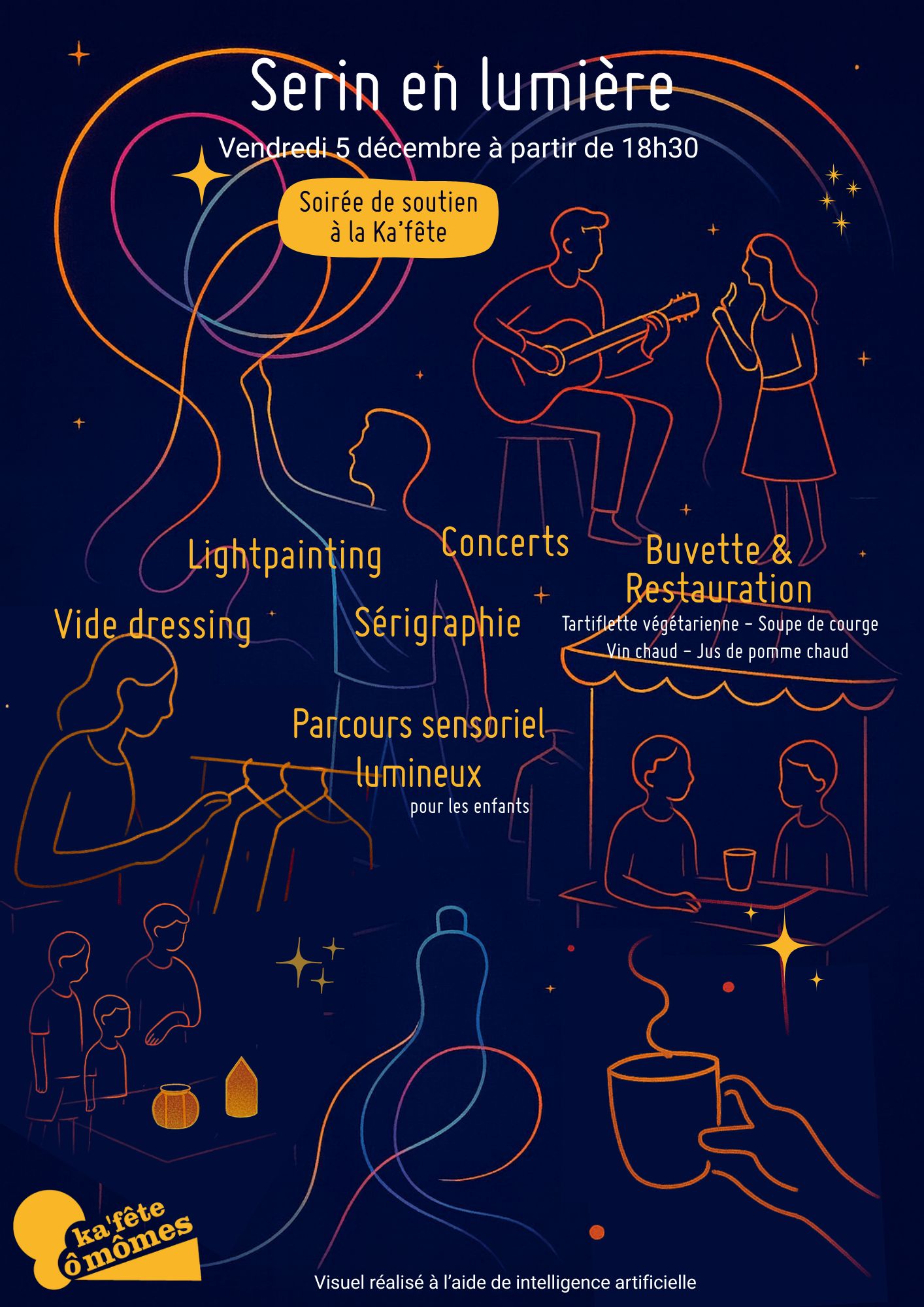 La Ka’fête ô mômes vous invite à une soirée festive et lumineuse qui fera rayonner le quartier Serin ! Une occasion idéale pour se retrouver, partager un moment chaleureux et célébrer ensemble l’hiver qui arrive.